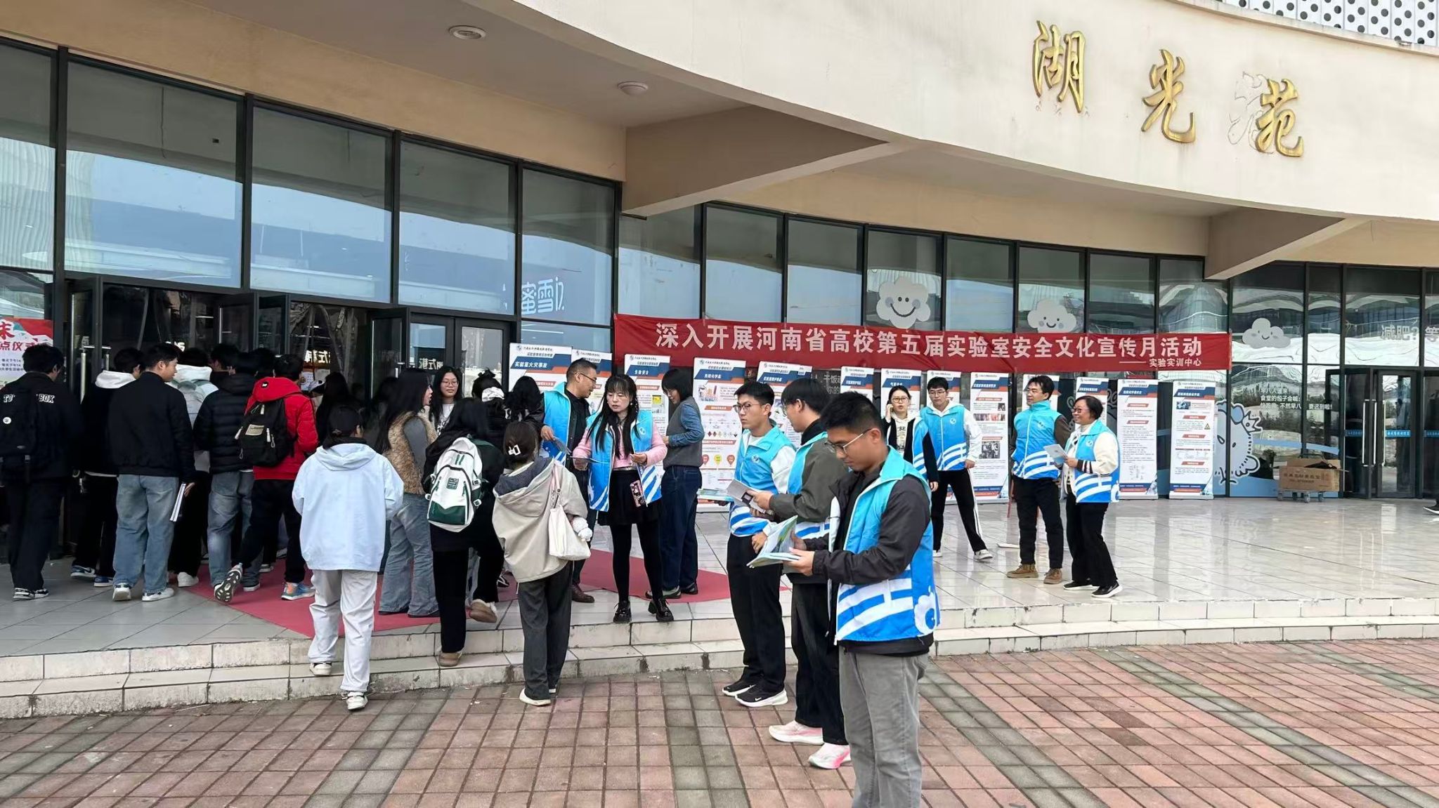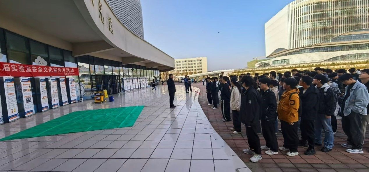 11月11日,我校在航空港校区湖光苑门前广场开展实验室安全知识宣传与危化品泄漏事故应急演练活动。